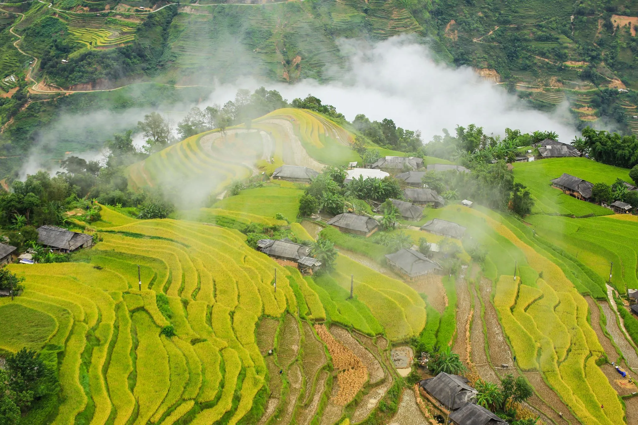 Hoang Su Phi Vietnam conserva un encanto auténtico y salvaje. Las más de 3.700 hectáreas de arrozales en terrazas se extienden por las comunidades de Thong Nguyen, Ho Thau, Ban Luoc, Ban Phung, Nam Ty, Thang Tin, Tan Tien y Nam Dich. De ellas, 1.380 hectáreas han sido reconocidas como Monumento Paisajístico Nacional, testimonio de su excepcional valor histórico y cultural.