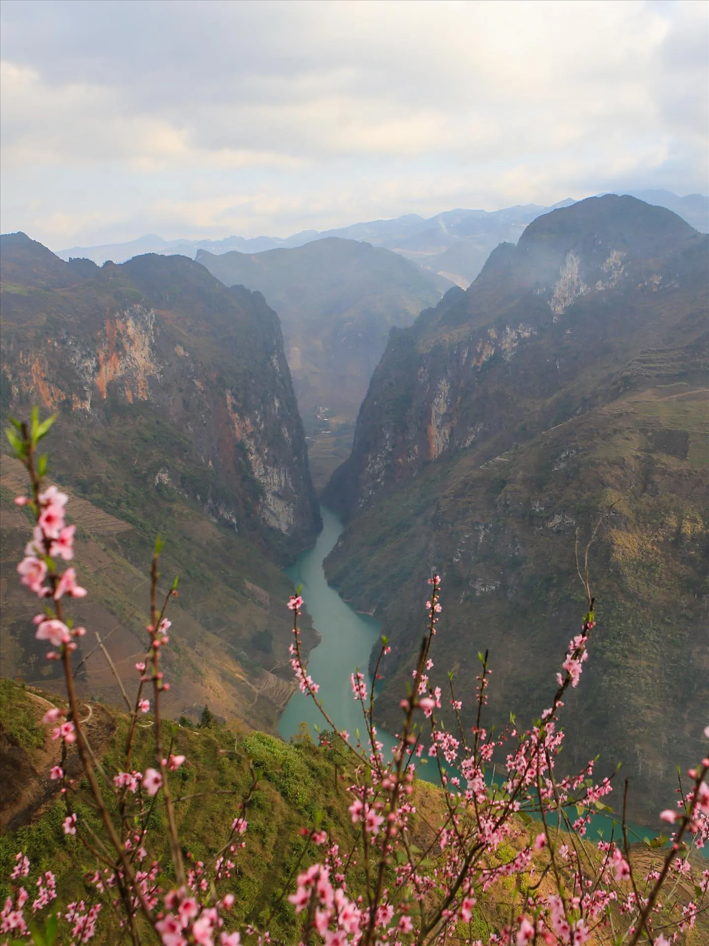En una de las carreteras más desafiantes pero hermosas del mundo, la naturaleza ofrece un toque de suavidad. Los árboles de melocotón silvestre crecen justo al borde del abismo. Mirando hacia abajo, se ve el hilo turquesa del Río Nho Que; mirando hacia arriba, se ven pétalos rosados contra la imponente piedra caliza gris. Es un crudo recordatorio de la resiliencia de la naturaleza y una vista única para su turismo en Vietnam.