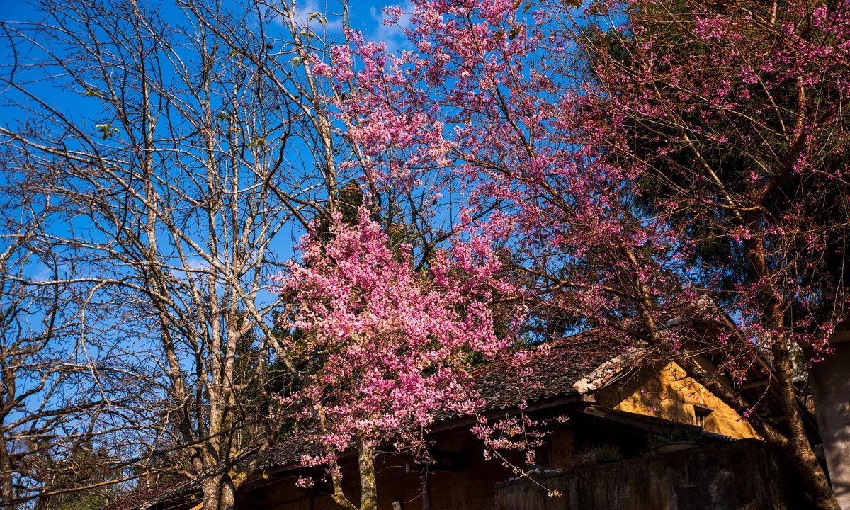 A diferencia de la delicada caída de nieve de los cerezos japoneses, la floración en Ha Giang tiene un tono rosa más profundo y audaz (a veces desvaneciéndose a un rubor pálido).