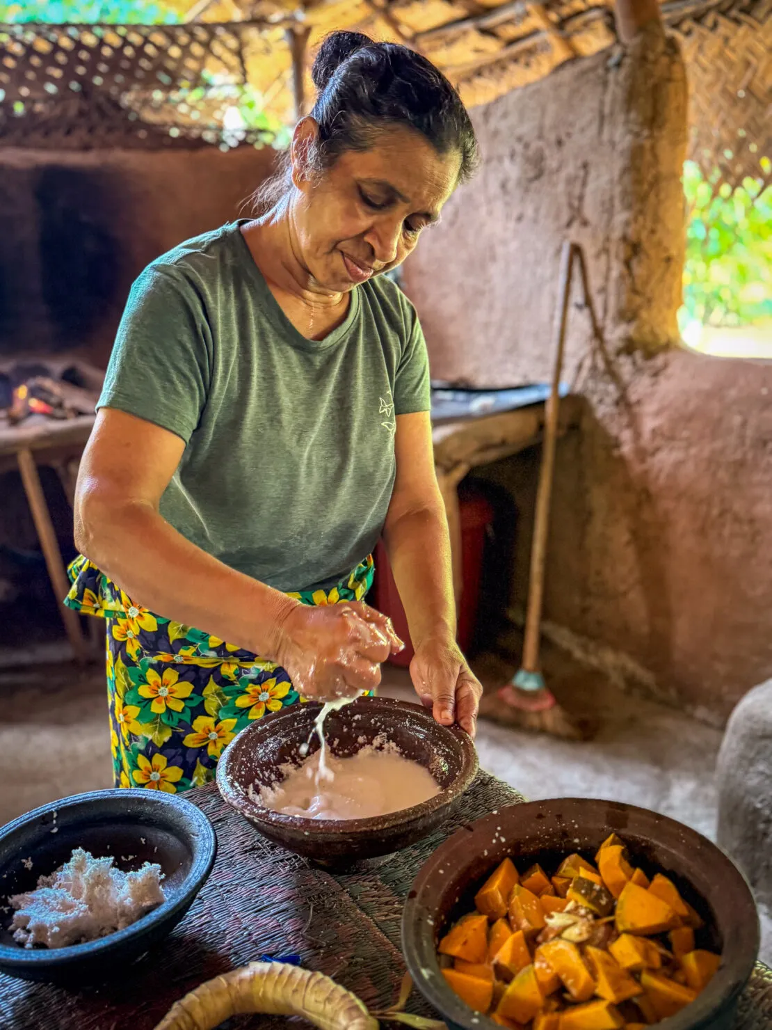 En esta aldea rural, inmersa entre lagos y palmeras de coco, los viajeros pueden participar en una clase de cocina auténtica. Recoger verduras frescas, machacar especias en el mortero y cocinar junto a las mujeres de la aldea transforma una simple comida en un recuerdo precioso: un encuentro directo con el alma de Sri Lanka.