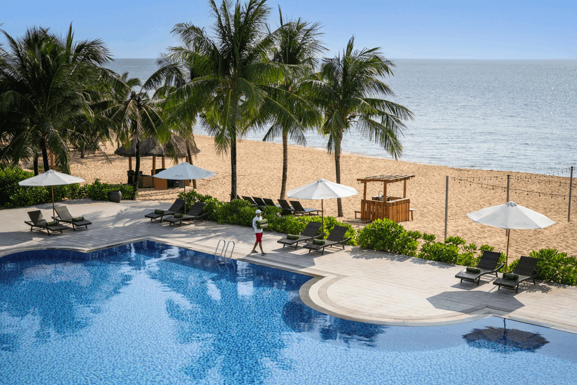 Si prefieres quietud y naturaleza (Retiros de lujo): Opta por resorts frente al mar en Dai Beach o Khem Beach. Aquí encontrarás el ambiente ideal para unas vacaciones en Vietnam románticas y tranquilas, lejos del ruido, con la naturaleza al alcance de la mano. Estos suelen ser resorts de lujo con servicios completos en el lugar, la opción perfecta para un viaje organizado a Vietnam.